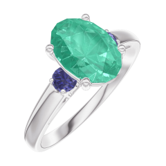 « L'ATELIER » NR 169364Pierścionek Białe złoto 375 - Szmaragd Owal 1 karat - Kamienie boczne Niebieski szafir 4.7 (9)