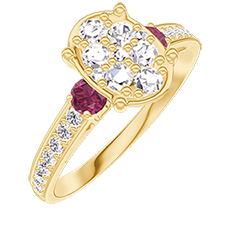 « L'ATELIER » NR 211145Pierścionek Żółte złoto 750 - Klaster naturalnych diamentów Owal odpowiednik 1 - Kamienie boczne Rubin - Oprawa Diament 4.7 (9)