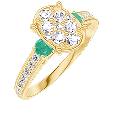 « L'ATELIER » NR 211185Pierścionek Żółte złoto 750 - Klaster naturalnych diamentów Owal odpowiednik 1 - Kamienie boczne Szmaragd - Oprawa Diament 4.7 (9)