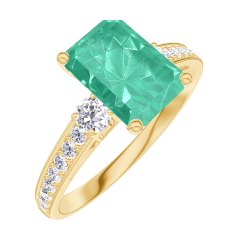 « L'ATELIER » NR 1005735Pierścionek Żółte złoto 750 - Syntetyczny szmaragd Prostokąt 1 karat - Kamienie boczne Diament laboratoryjny - Oprawa Diament laboratoryjny 4.4 (8)