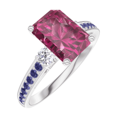 « L'ATELIER » NR 168036Pierścionek Białe złoto 375 - Rubin Prostokąt 1 karat - Kamienie boczne Diament - Oprawa Niebieski szafir 4.4 (8)