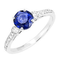 « L'ATELIER » NR 1005097Pierścionek Białe złoto 750 - Syntetyczny szafir Okrągły 1 karat - Kamienie boczne Diament laboratoryjny - Oprawa Diament laboratoryjny 4.7 (15)