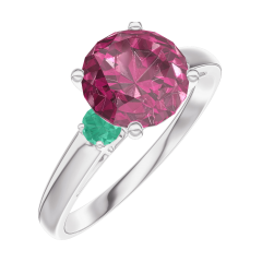 « L'ATELIER » Nº167883Pierścionek Białe złoto 750 - Rubin okrągły 1 karat - Kamienie boczne Szmaragd 4.8 (14)