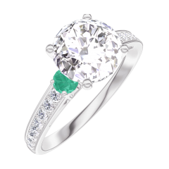 « L'ATELIER » NR 187287Pierścionek Białe złoto 750 - Diament laboratoryjny okrągły 1 karat - Kamienie boczne Szmaragd - Oprawa Diament laboratoryjny 4.8 (14)
