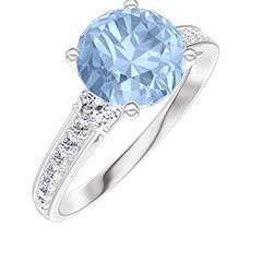 « L'ATELIER » NR 199132Pierścionek Białe złoto 375 - Niebieski topaz okrągły 1 karat - Kamienie boczne Diament - Oprawa Diament 4.8 (14)