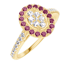 « L'ATELIER » NR 211566Pierścionek Żółte złoto 375 - Klaster naturalnych diamentów Owal odpowiednik 0.5 - Korona z kamieni Rubin - Oprawa Diament 4.5 (12)