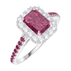 « L'ATELIER » NR 1006459Pierścionek Białe złoto 375 - Syntetyczny rubin Prostokąt 0.5 karat - Korona z kamieni Diament laboratoryjny - Oprawa Rubin 4.7 (46)