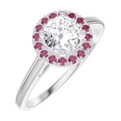 « L'ATELIER » Nº170020Pierścionek Białe złoto 375 - Diament okrągły 0.5 karat - Korona z kamieni Rubin 4.7 (18)