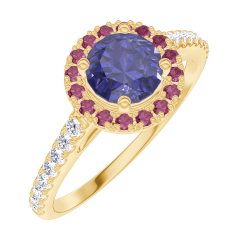 « L'ATELIER » NR 170597Pierścionek Żółte złoto 750 - Niebieski szafir okrągły 0.5 karat - Korona z kamieni Rubin - Oprawa Diament 4.7 (18)