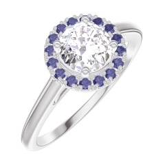 « L'ATELIER » NR 190036Pierścionek Białe złoto 375 - Diament laboratoryjny Okrągły 0.5 karat - Korona z kamieni Niebieski szafir 4.7 (18)