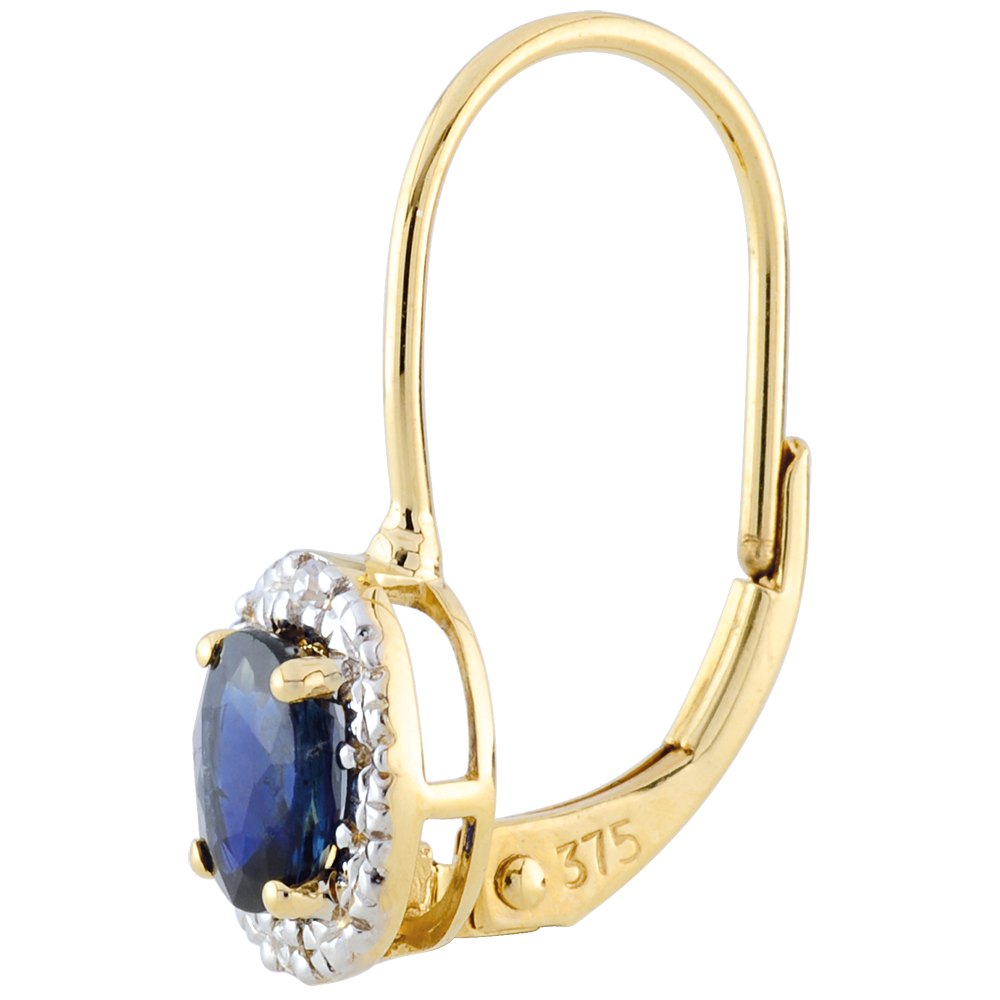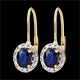 Szafiry oprawione w żółte złoto ukoronowane białym złotem i diamentami. Klasyczne i wyrafinowane kolczyki wiszące, Model bigiel