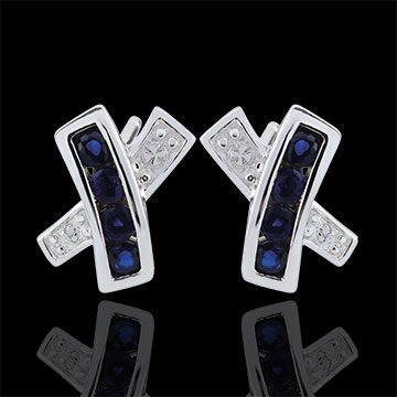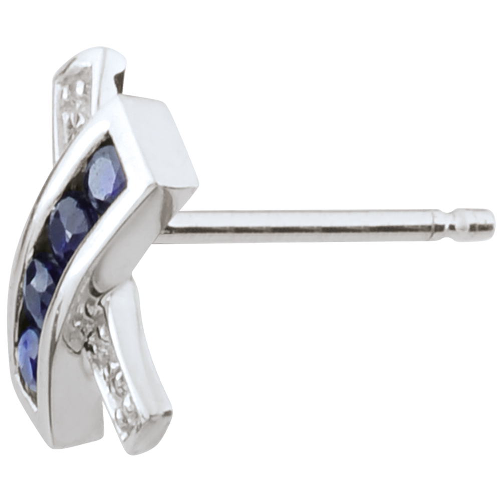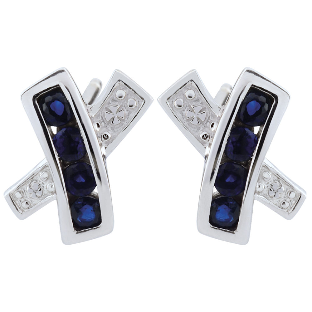 Każdy kolczyk zdobi 8 szafirów niebieskich o jakości Very Good, łącznie 0,22 ct, uzupełnionych diamentami.