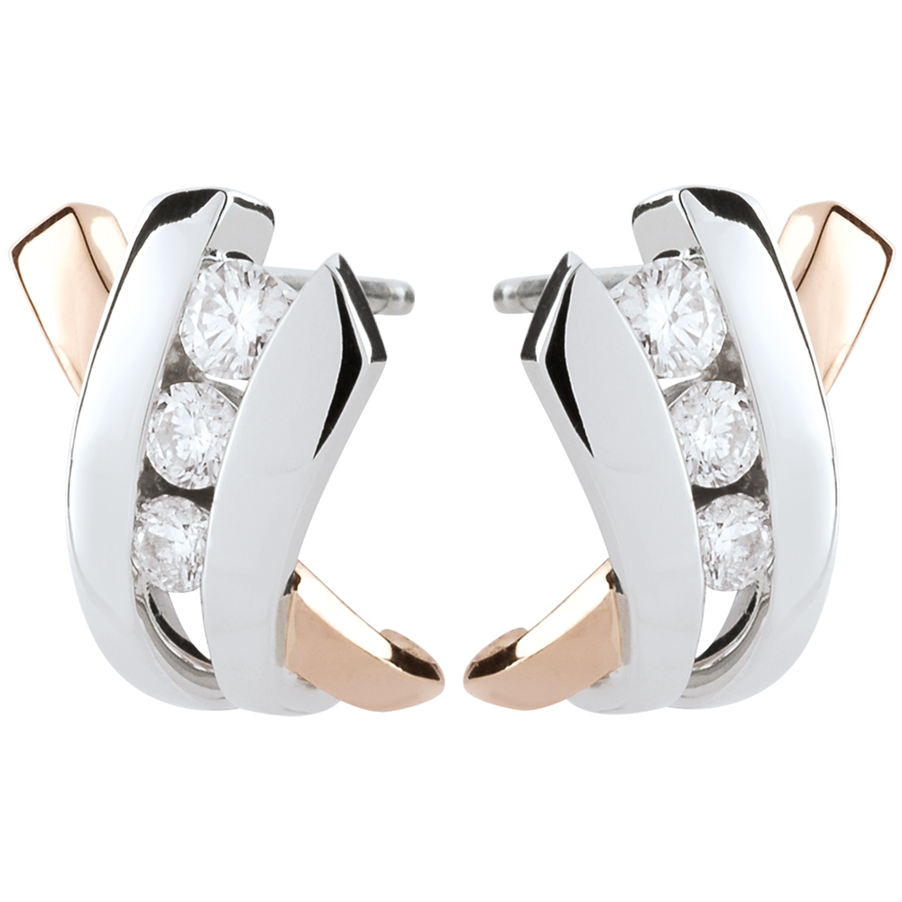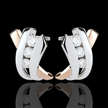 Kolczyki Drogocenne Gniazdo z trzema diamentami - Modi - złoto białe i złoto różowe 9-karatowe