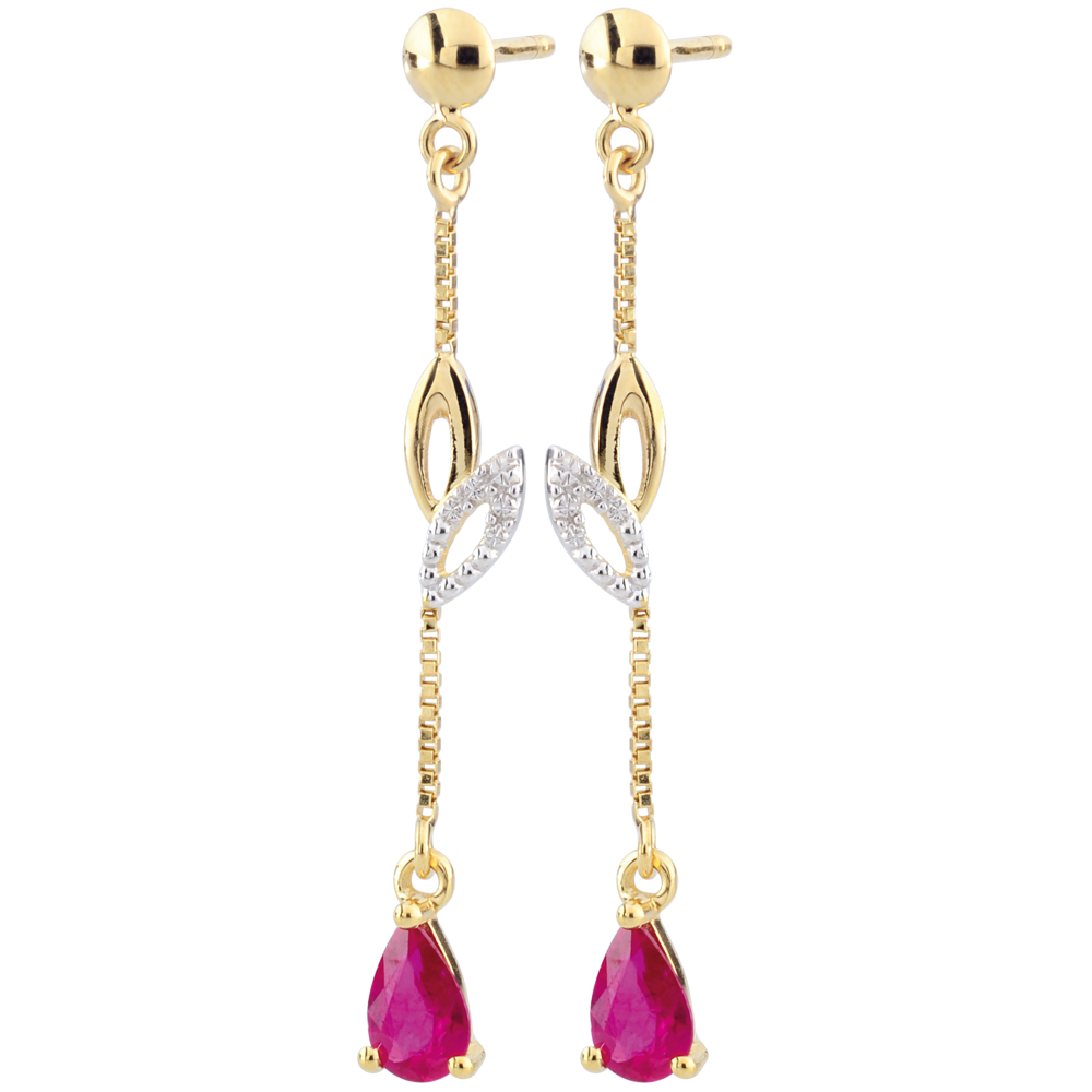 Kolczyki Evina - złoto białe i żółte 9-karatowe oraz rubiny