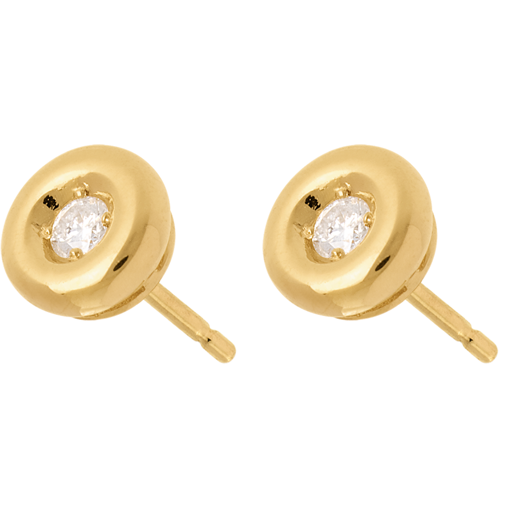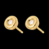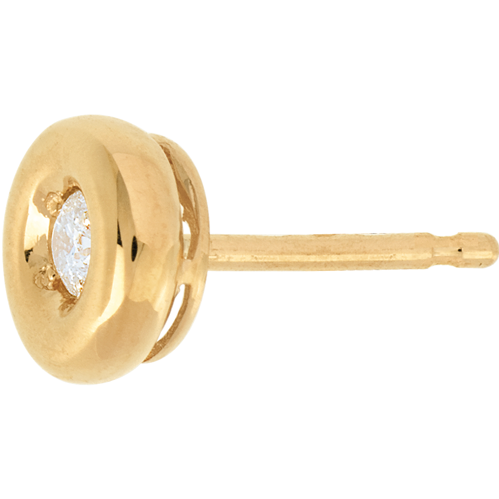 Diament zatopiony w sercu krągłego kielicha z żółtego złota w parze okrągłych i delikatnych kolczyków.