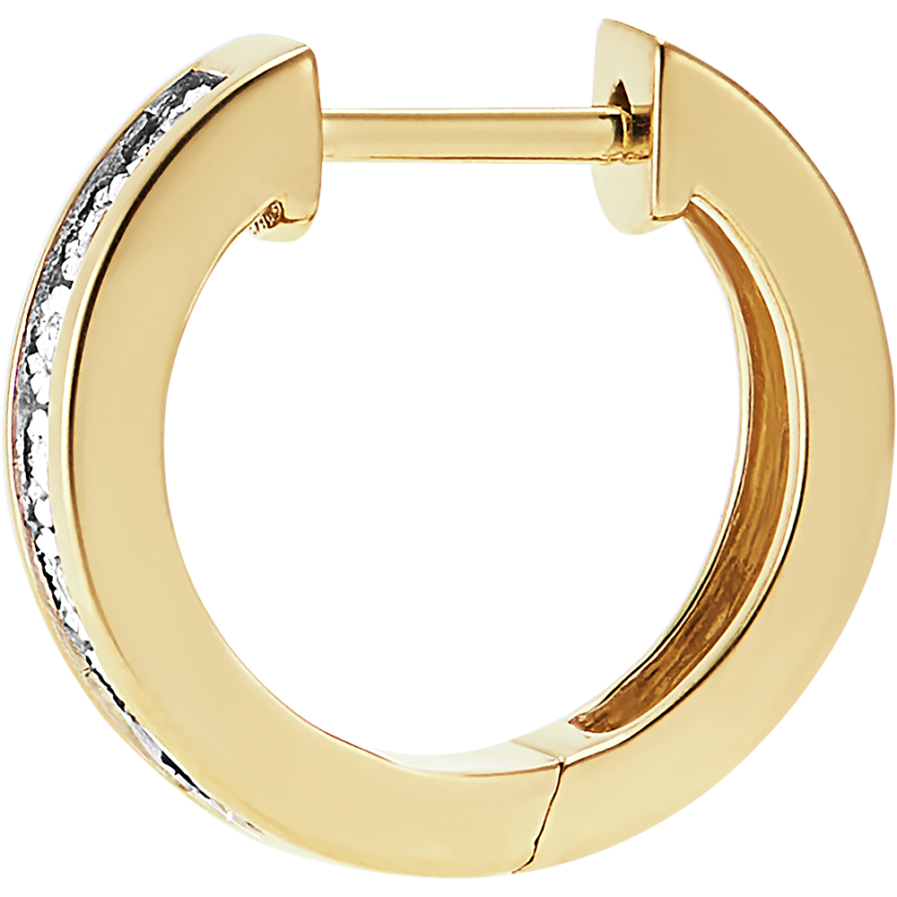 Kolczyki w kształcie kółek z pełną uroku oprawą: białe złoto otaczające diamenty optycznie je powiększa, zapewniając niespotykany blask.