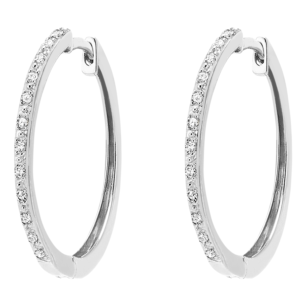 Subtelne kolczyki koła z białego złota częściowo wysadzane diamentami nadają pełen blasku nowoczesny akcent. Koło o średnicy 18 mm