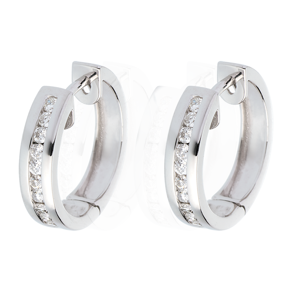 Kolczyki koła z białego złota 9-karatowego z diamentami - oprawa kanałowa - 0,24 karata - 22 diamenty