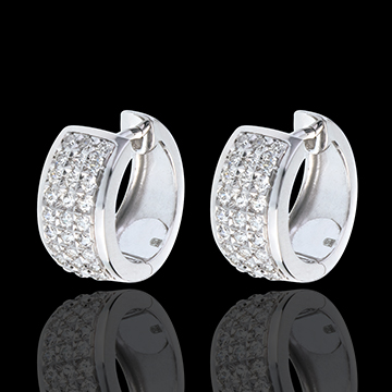 Opalizujący blask diamentów w starannej i wyrafinowanej oprawie nadających gwiezdną poświatę wokół twarzy.