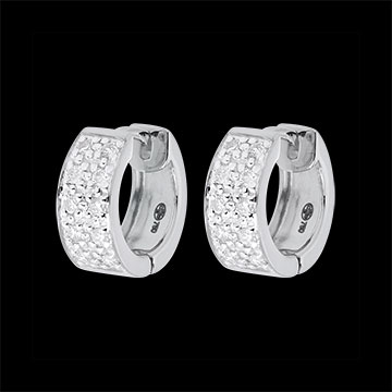 Opalizujący blask diamentów w starannej i wyrafinowanej oprawie nadających gwiezdną poświatę wokół twarzy.