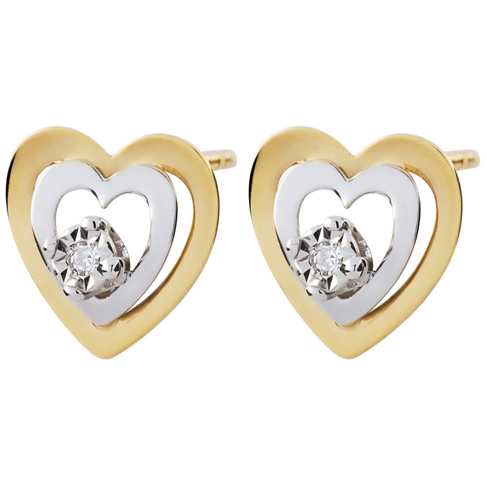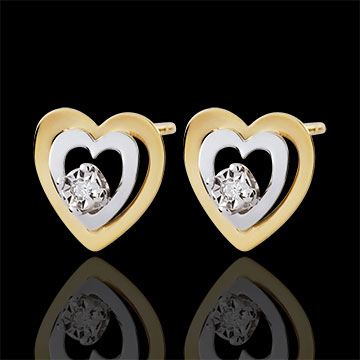 - Dwukolorowy wzór podwójnych serc z białego i żółtego złota 9 karat
