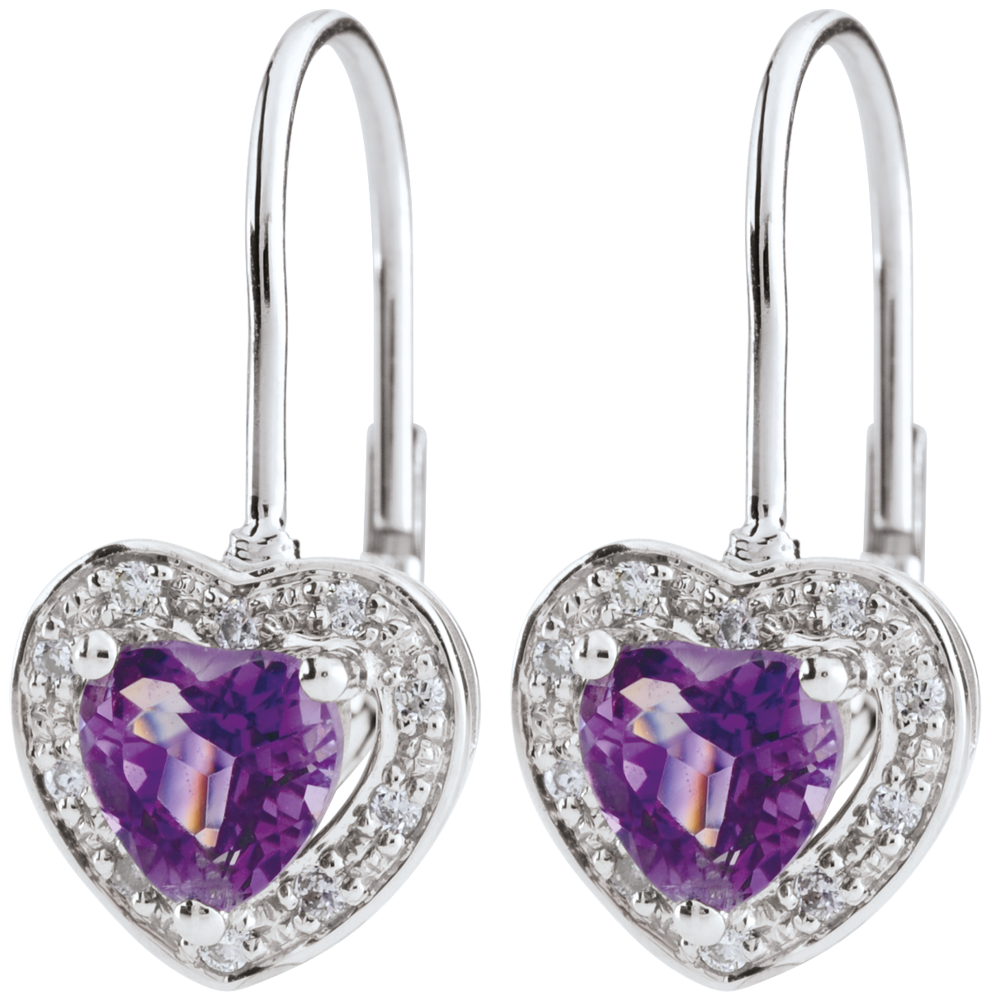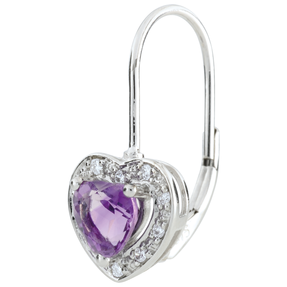 Kolczyki w kształcie serca Oczarowanie - ametyst - złoto białe 18-karatowe