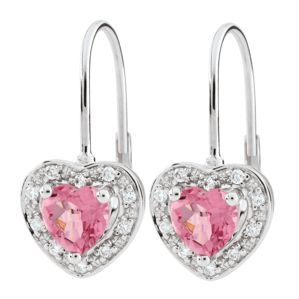Kolczyki w kształcie serca Oczarowanie - turmalin różowy - złoto białe 9-karatowe