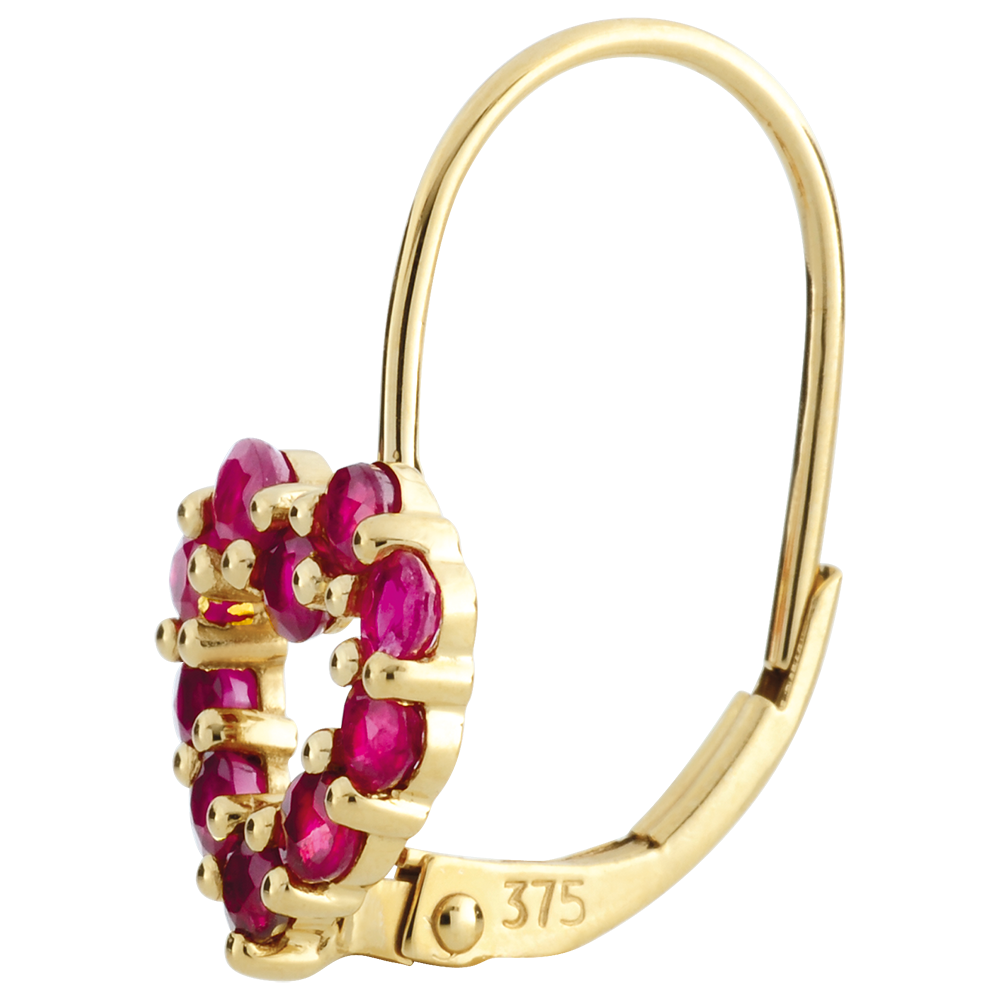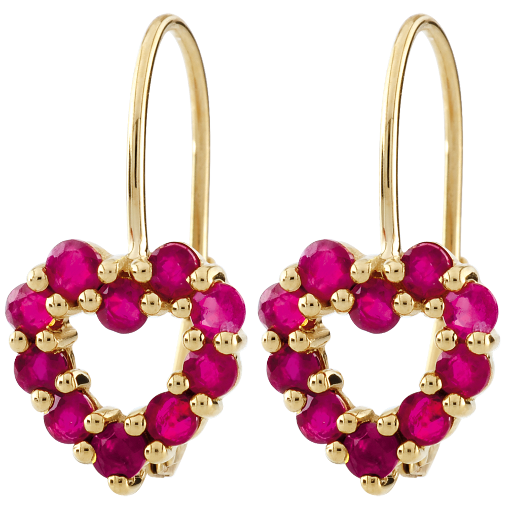 Kolczyki w kształcie serca Rosie - rubin - złoto żółte 9-karatowe