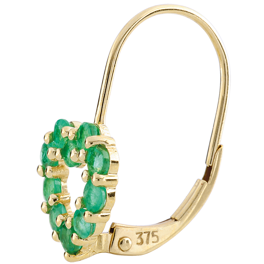 Kolczyki w kształcie serca Rosie - szmaragdy - złoto żółte 9-karatowe