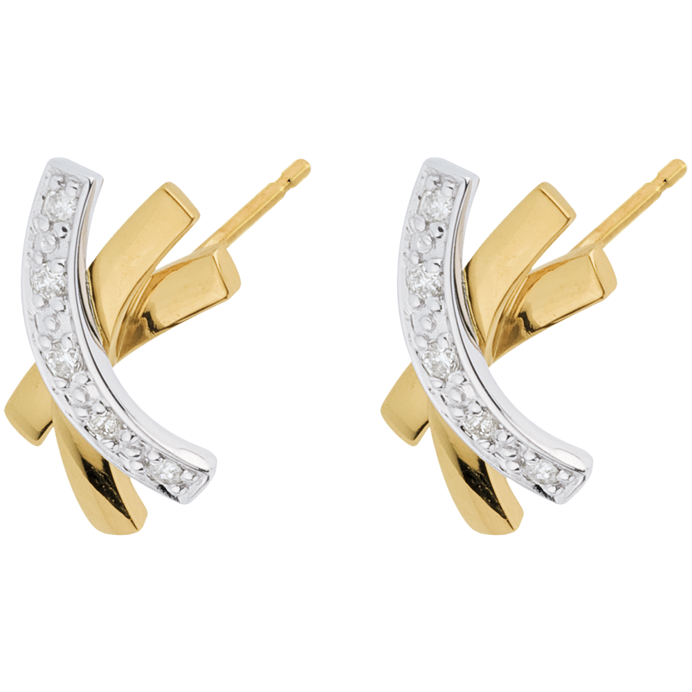 Dwa paski żółtego złota przecinają przecinek z białego złota i diamentów, tworząc stylową gwiazdę.