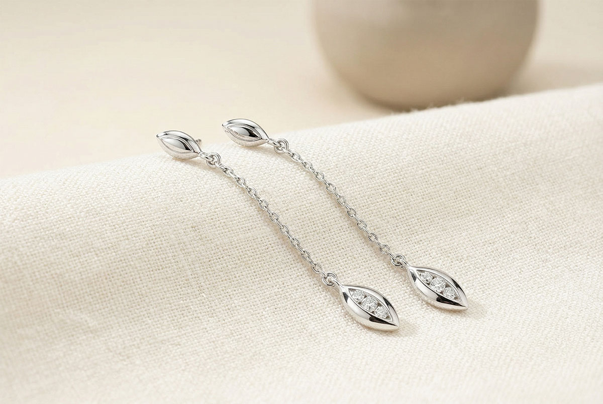 Kolczyki Łezki - złoto białe 9-karatowe