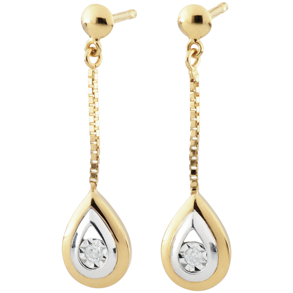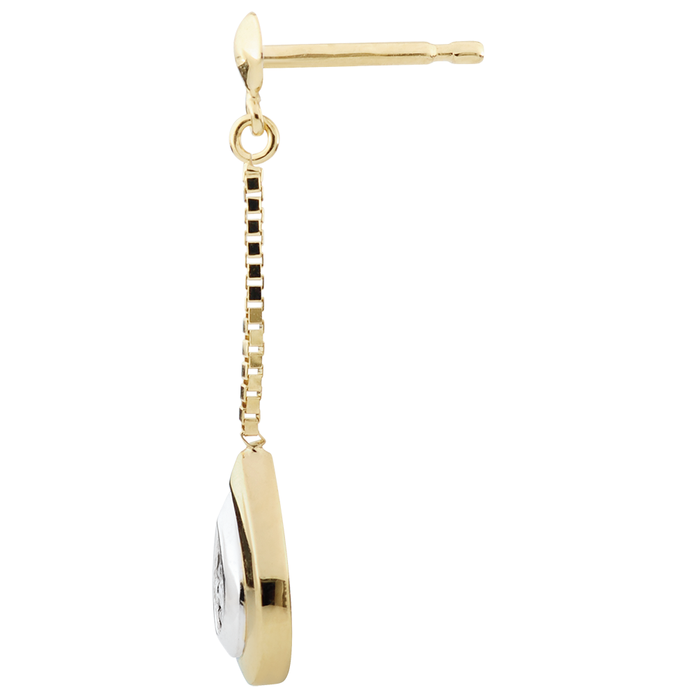 Dwie delikatne łzy z białego i żółtego złota z błyszczącym diamentem na środku.