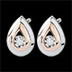 Dwie delikatne łzy z białego i różowego złota z błyszczącym diamentem na środku.