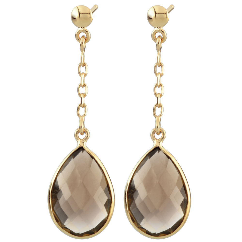 Kolczyki Narcyz - kwarc dymny - złoto żółte 9-karatowe