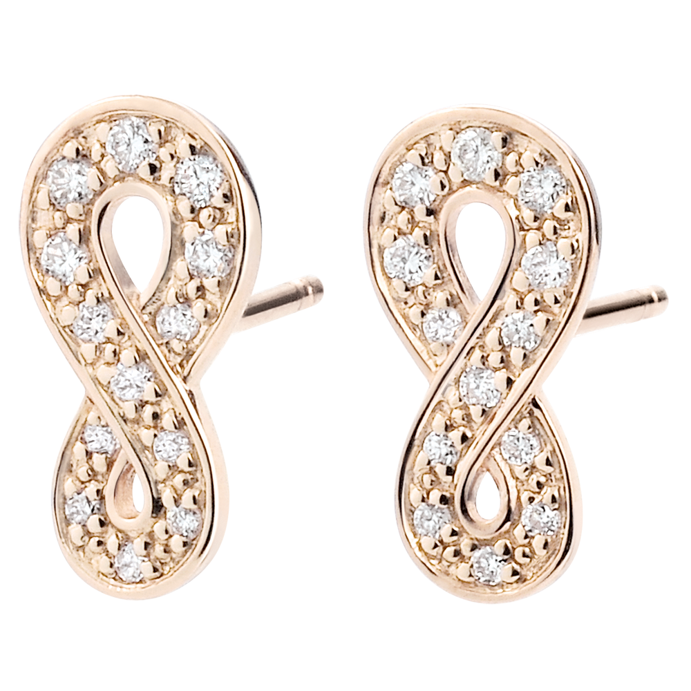 Znak nieskończoności z różowego złota wysadzany diamentami w formie sztyftów. Symbol absolutnej wieczności.