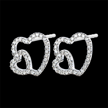 Kolczyki Obfitość – Podwójne serce – białe złoto 9-karatowe z diamentami