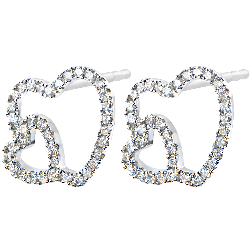 Kultowe serce w podwójnej wersji w parze wyrafinowanych i delikatnych kolczyków wysadzanych diamentami.