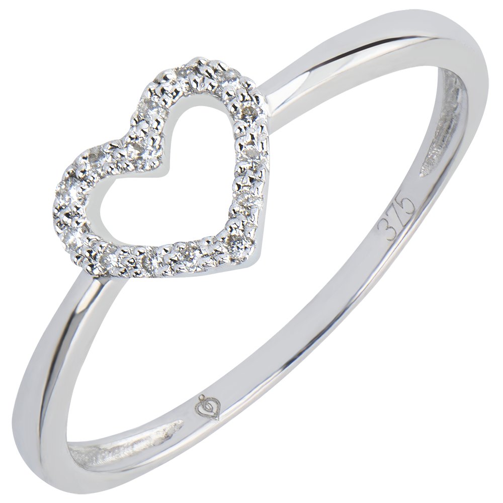 Wysadzane diamentami kontury ażurowego serca w pierścionku o podstawowej i świeżej formie. Czyste i delikatne przesłanie bez niedomówień.