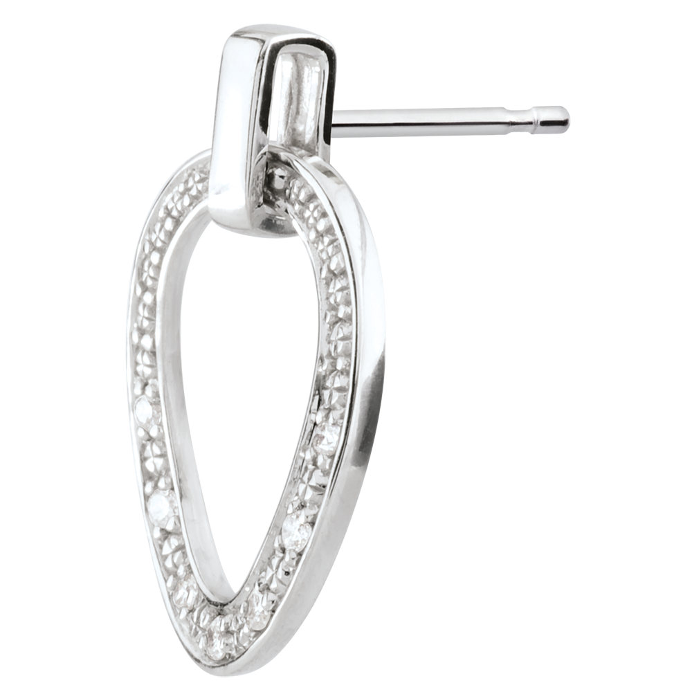 Dwie owalne formy wysadzane diamentami uchwycone w zakrzywionym ruchu i przymocowane do sztyftów. Subtelne i eleganckie, błyszczą przy każdym ruchu.