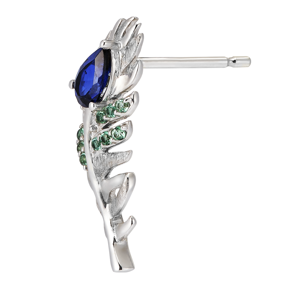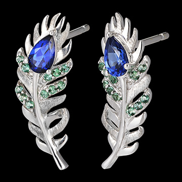 Kolczyki Altesse to kwintesencja wyrafinowanej elegancji. Zostały wykonane z 18-karatowego białego złota i przepięknie ozdobione 24 syntetycznymi szmaragdami i szafirami, w tym 2 szafirami w kształcie gruszki o masie 0,25 karata. Każdy detal tych kolczyków odzwierciedla splendor piór, znak rozpoznawczy kolekcji Panache.