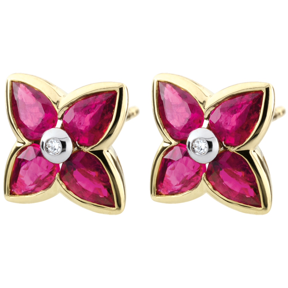 Kolczyki Piękna Gwiazda - rubin - złoto żółte 9-karatowe