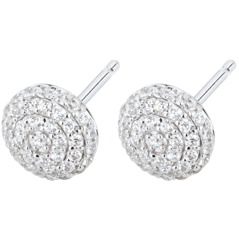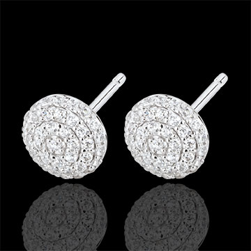 Sztyfty z białego złota wykonane z dwóch półkul wysadzanych diamentami w połączeniu prostoty i esencji.