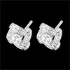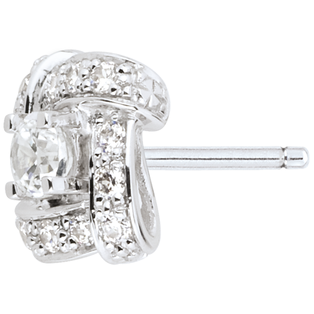 Pojedynczy diament schowany w gnieździe z białego złota wysadzanym diamentami.