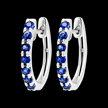 Subtelne kolczyki koła z białego złota 9 karat, półosadzone 14 szafirami niebieskimi o jakości Very Good.
