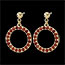 Te kolczyki wiszące prezentują dwa delikatne koła wysadzane 40 czerwonymi granatami o łącznej masie 1 karata, osadzone w żółtym złocie 9 karat.