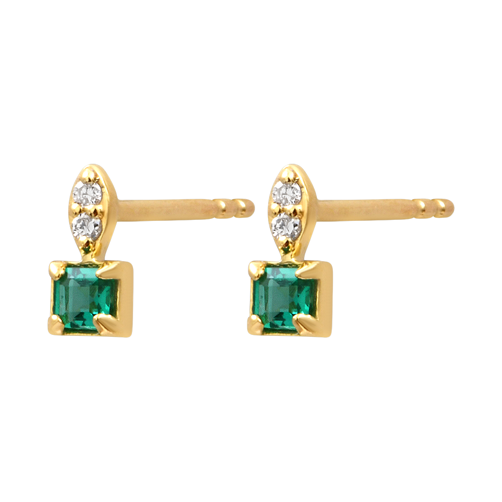 RAJSKI PTAK NR 52Sztyfty - Żółte złoto 375 - Syntetyczny szmaragd, Diament laboratoryjny ID : 1586