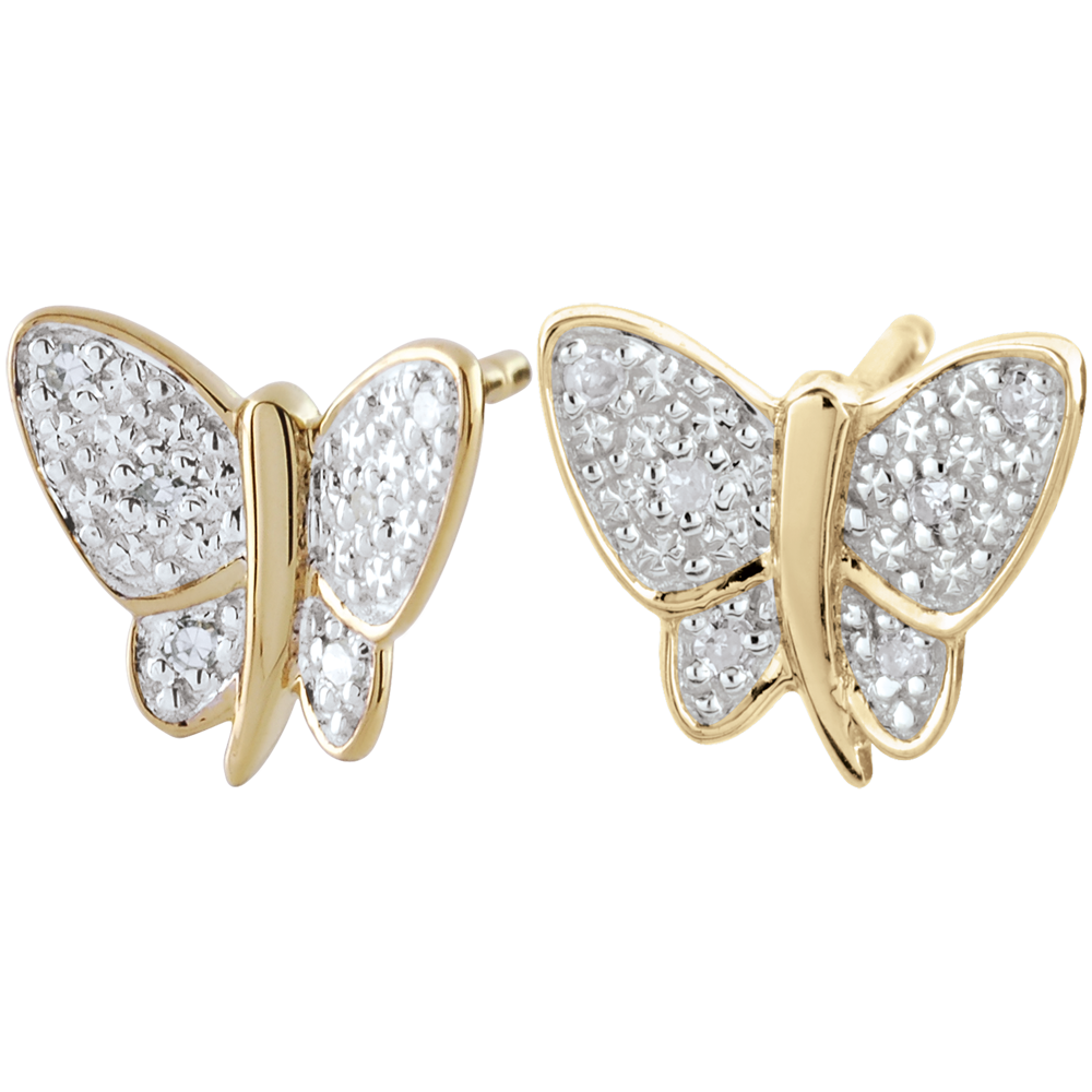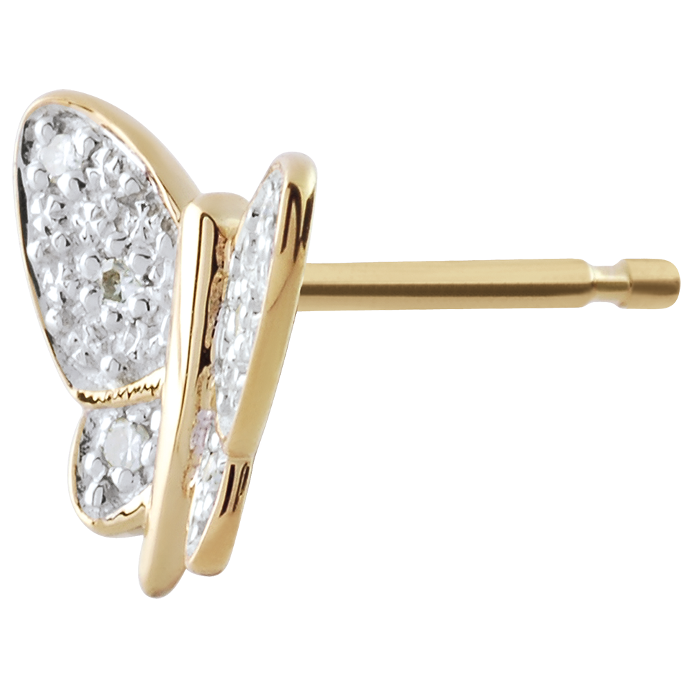 Dwa nowoczesne i delikatne motyle ze złota i diamentów mieniące się przy każdym ruchu.
