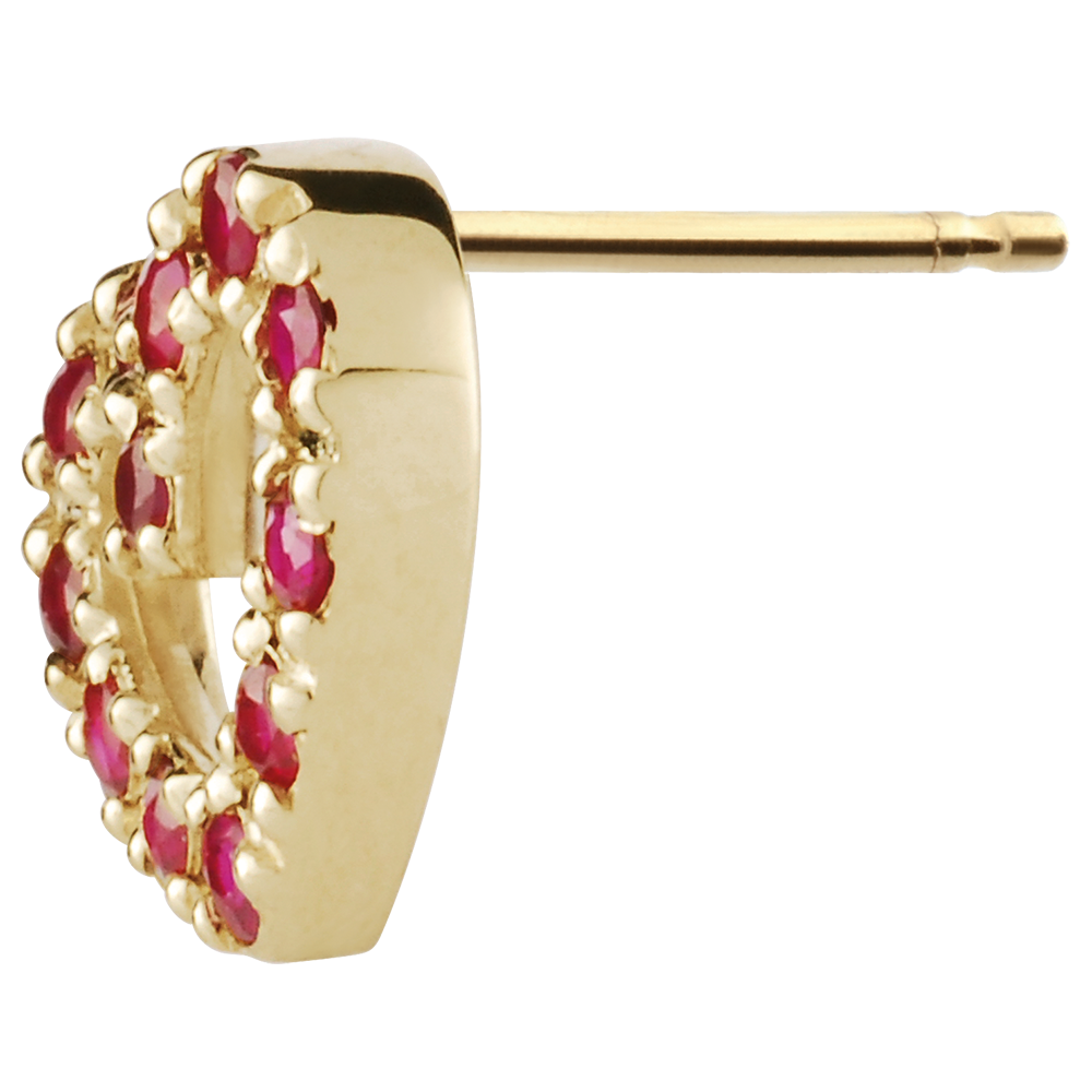 Kolczyki Świętujące Serce - Rubin - złoto żółte 9-karatowe