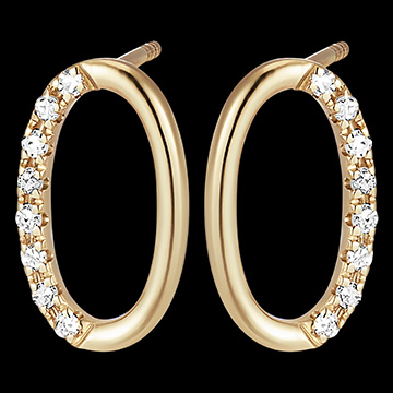 Kolczyki z żółtego złota w kształcie owalu, który do połowy został subtelnie ozdobiony diamentami. Minimalistyczny model łączący w sobie piękno i emocje.