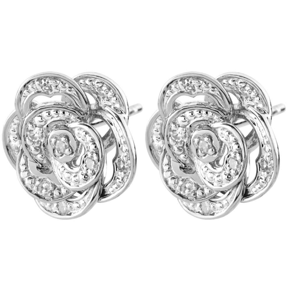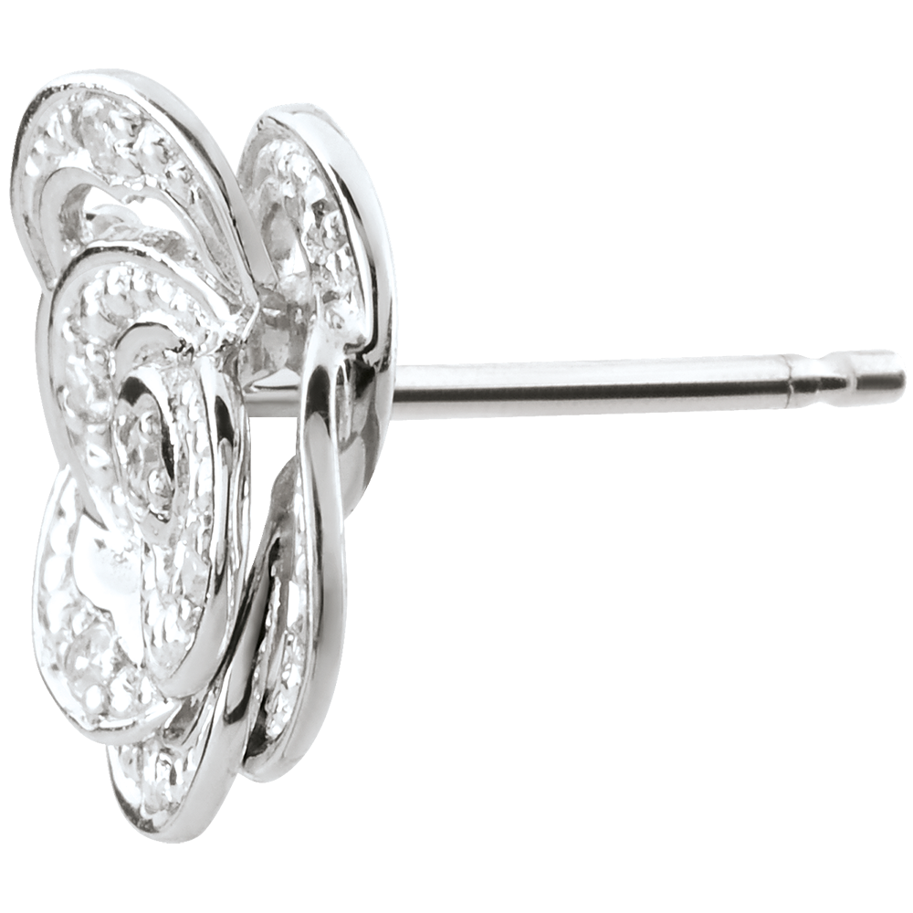 Kolczyki Rozkwit - Koronkowa Róża - złoto białe 9-karatowe i diamenty